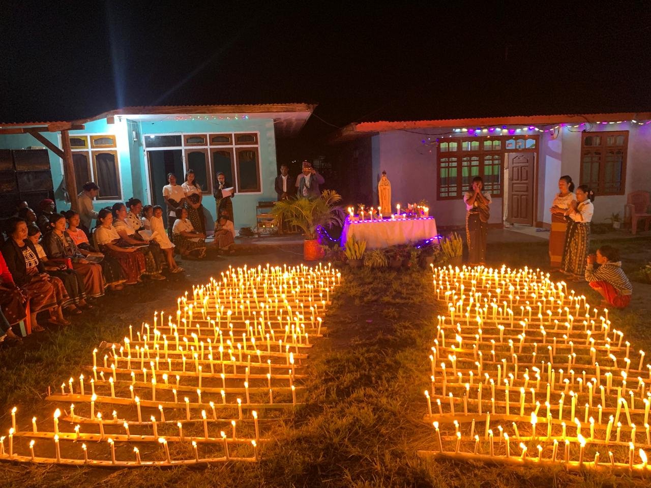 Mereka berkumpul di halaman kampung Cancar, Kelurahan Wae Belang, Kecamatan Ruteng, untuk mengadakan doa seribu lilin bagi perdamaian dunia pada Sabtu (28/3/2026).