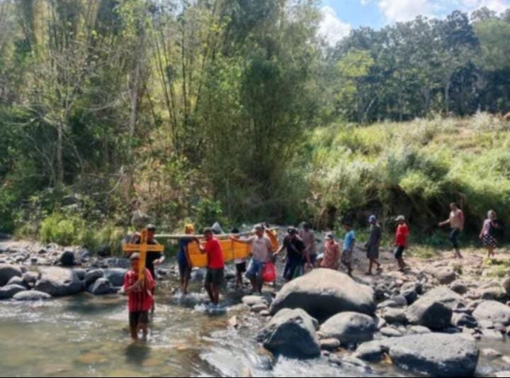 “Bayangkan, jenazah harus kami pikul sambil menyeberangi sungai yang dalam dan arusnya deras. Itu bukan hanya melelahkan, tapi juga menyedihkan,” tutur Vinsensius Joman, warga Kampung Munda, kepada wartawan Selasa,9 September 2025.