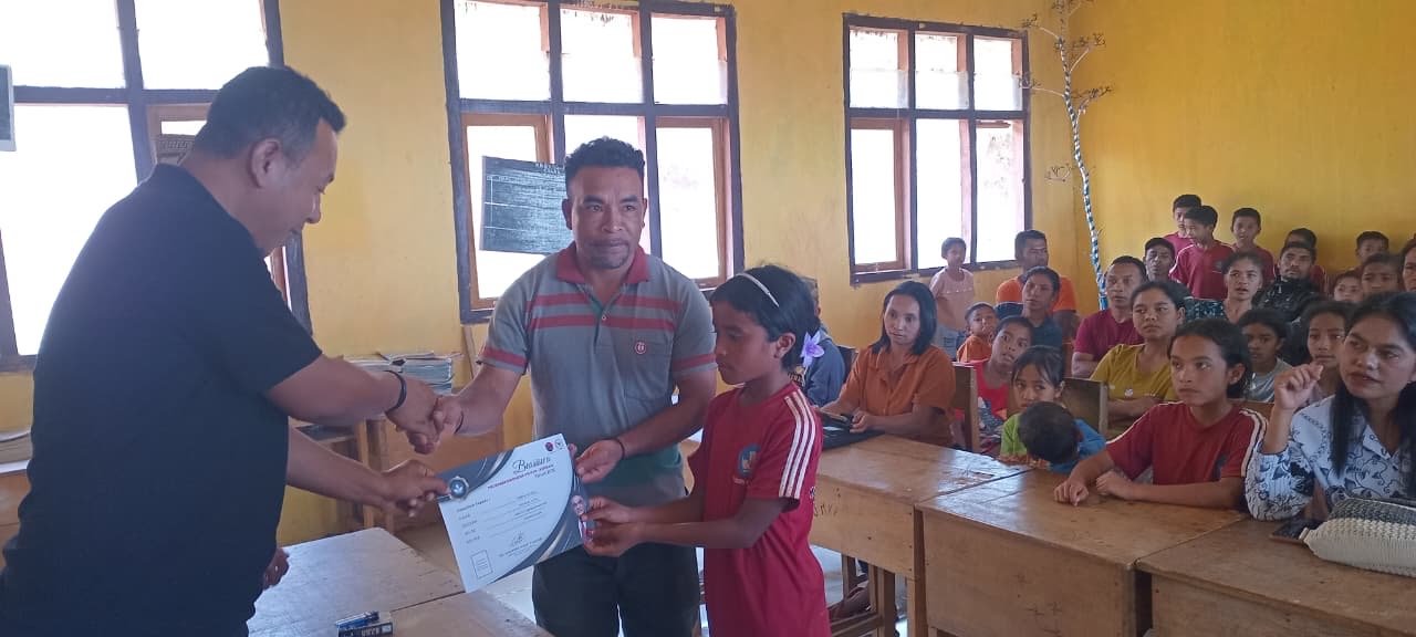 Manggarai Timur, Pena1NTT.com – Ketua Fraksi PDI Perjuangan DPRD Kabupaten Manggarai Timur, Paulus Yohanes Yorit Poni, S.Sos, mewakili Anggota DPR RI Dr. Andreas Hugo Pareira, menyerahkan 40 sertifikat Program Indonesia Pintar (PIP) Aspirasi kepada siswa SDN Reba Rana, Desa Compang Congkar, Kecamatan Congkar, Sabtu (13/9/2025).