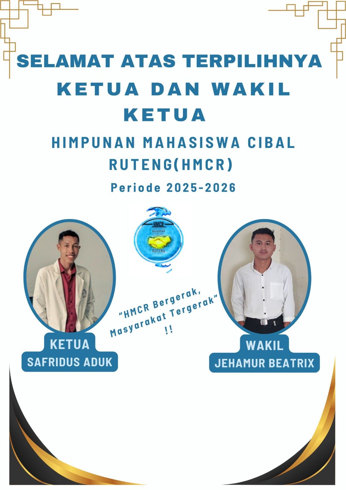 “Kami berharap segenap anggota HMCR dapat menghilangkan sekat-sekat perbedaan pascapemilihan. Mari kita rajut kembali persaudaraan dan buktikan bahwa semboyan kita, ‘HMCR Bergerak, Masyarakat Tergerak,’ adalah semangat untuk aksi nyata. Kami butuh kontribusi aktif dan partisipasi seluruh anggota untuk mewujudkan visi besar organisasi,” tambahnya.